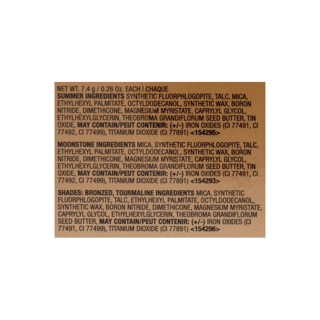 How to use: Can be applied wet or dry. Sweep over high points of the face for a natural looking glow. Use a stippling motion when applying to the high points of the face for a more intense glow.