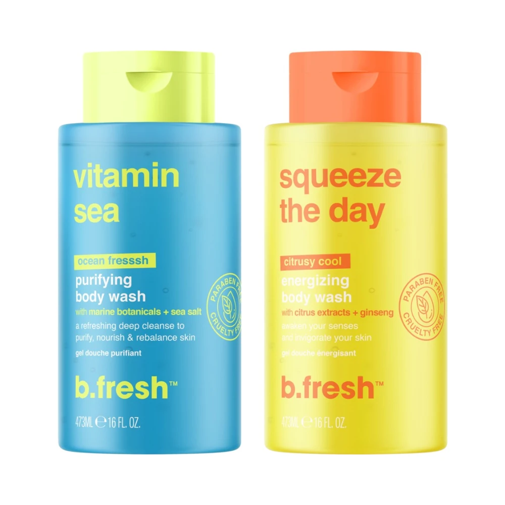 Transform your daily shower into a revitalizing spa experience with the B.fresh Body Wash Duo. This set features two uniquely crafted formulas designed to cleanse, purify, and recharge your skin using nutrient-dense marine botanicals and refreshing antioxidant-rich citrus extracts. Perfect for achieving a natural, healthy glow from head to toe.