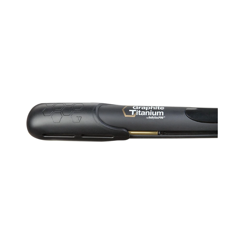 Graphite Titanium by BaBylissPRO Ionic Hair Straightener is a masterpiece of multiple innovations – graphite on the upper plate, titanium on the lower plate and an ionic generator. Ceramic elements, the fastest and highest quality heating elements available, complete the melding of the finest materials, function and form. Clever memory function restarts the straightener at the previous selected temperature, while dual voltage allows for worldwide use. Exceptional heat, glide and durability for the ultimate fast yet ultra-gentle styling.