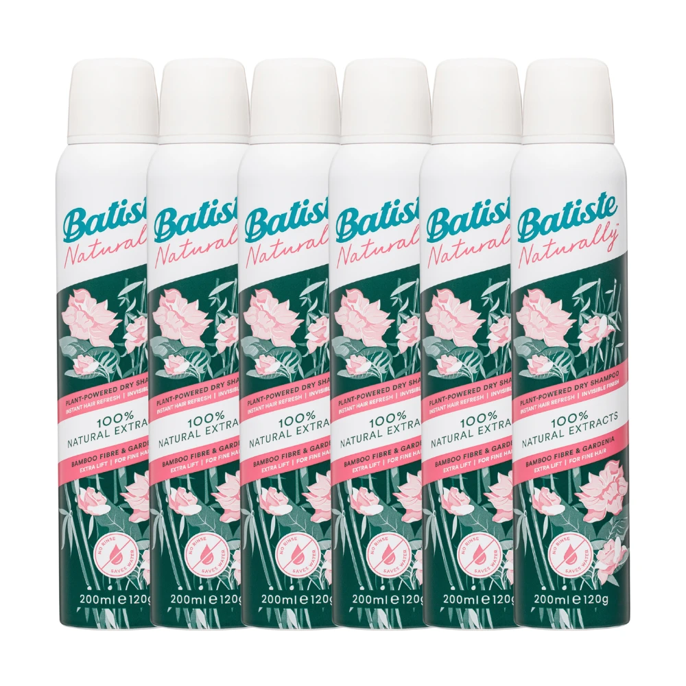 Experience the ultimate hair refresh with the Batiste Naturally collection. This plant-powered dry shampoo bundle leverages the strength of bamboo fibre and the delicate scent of gardenia to revitalize your hair between washes. Designed for those who value both performance and sustainability, this 6-pack ensures you never run out of your favorite eco-conscious styling essential.