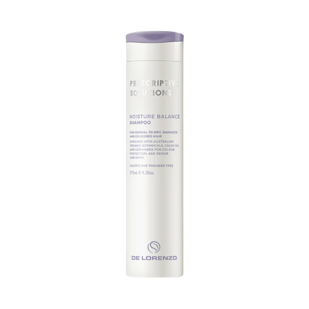 De Lorenzo Prescriptive Solutions Moisture Balance Shampoo is a gentle, lush, sulphate-free cleanser that fights colour fade and replenishes lost moisture. Contains active botanicals to reinforce the natural cuticle barrier, locking in moisture and providing strength. Inspired by the Australian desert and infused with Kakadu Plum, Wattle Seed, Quandong, and Desert Lime extracts, these incredible ingredients make De Lorenzo PS Moisture balance shampoo the perfect product to bind and replenish lost moisture in your hair.