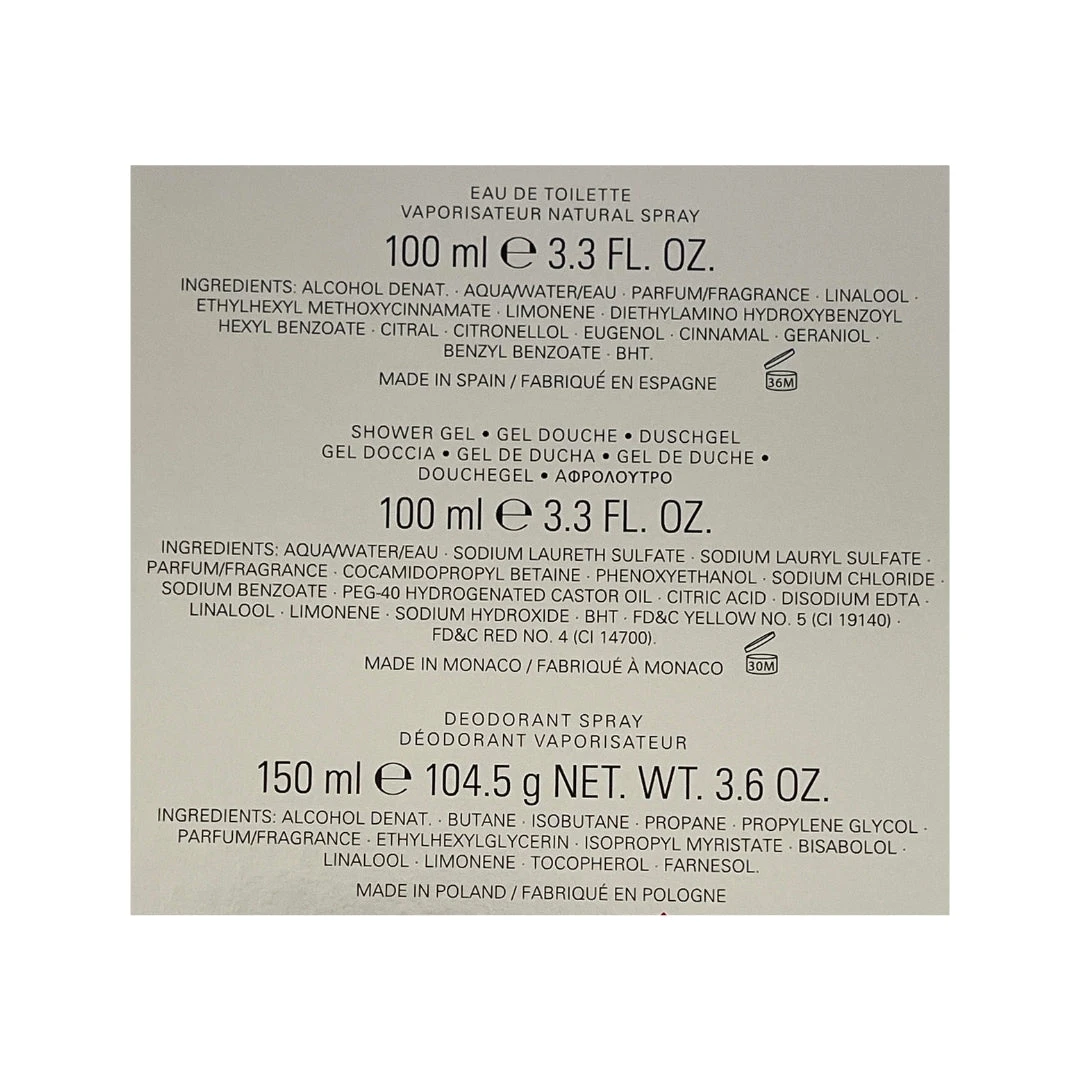 - Set Contents: 100mL EDT, 100mL Shower Gel, 150mL Deodorant