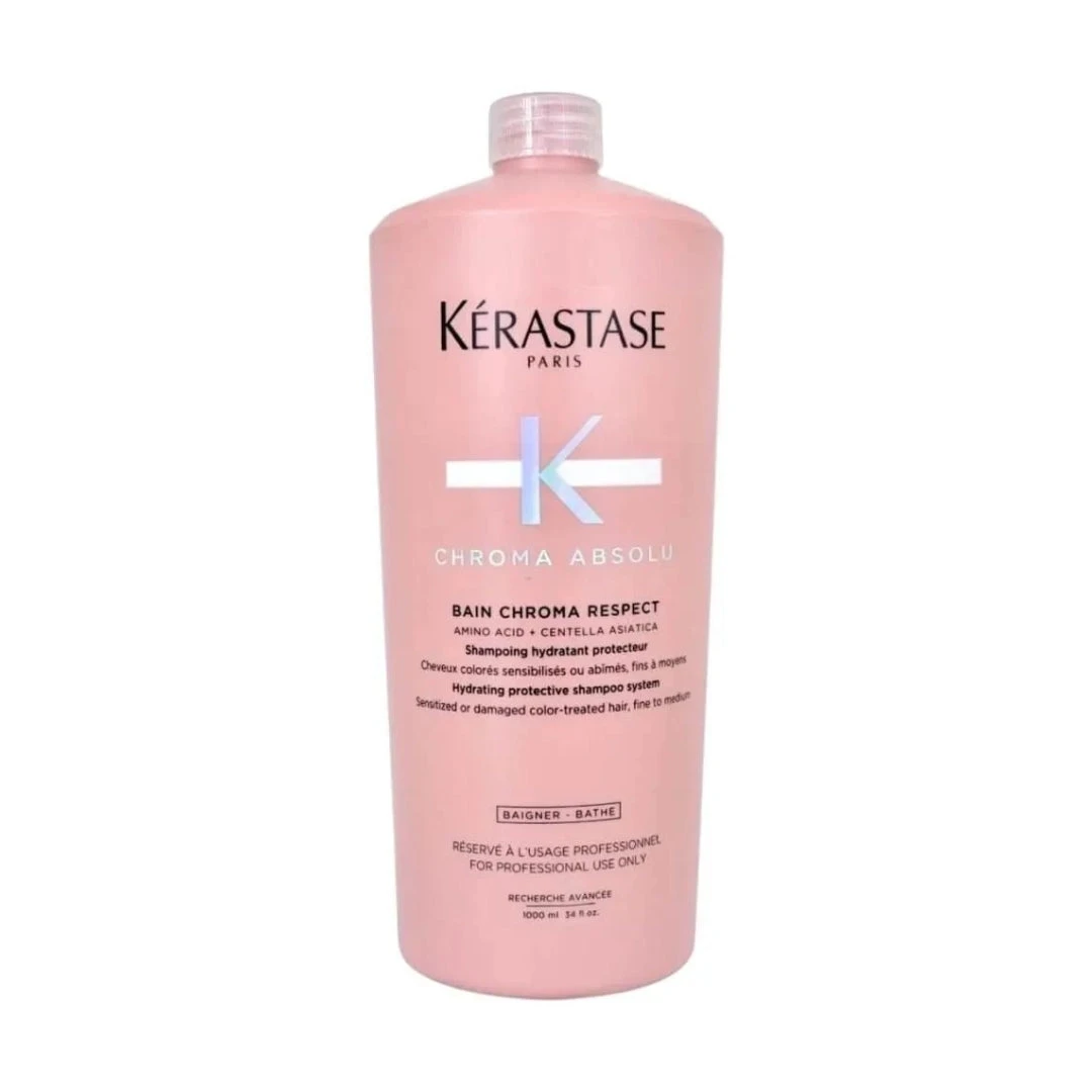 Introducing Kerastase Chroma Absolu Bain Chroma Respect Shampoo, the ultra hydrating, protecting and highly nourishing shampoo for over-coloured, damaged and sensitive hair. Ideal for medium to thick hair that has been coloured or bleached a few too many times. Designed to deeply cleanse and nourish strands whilst protecting colour from fading.