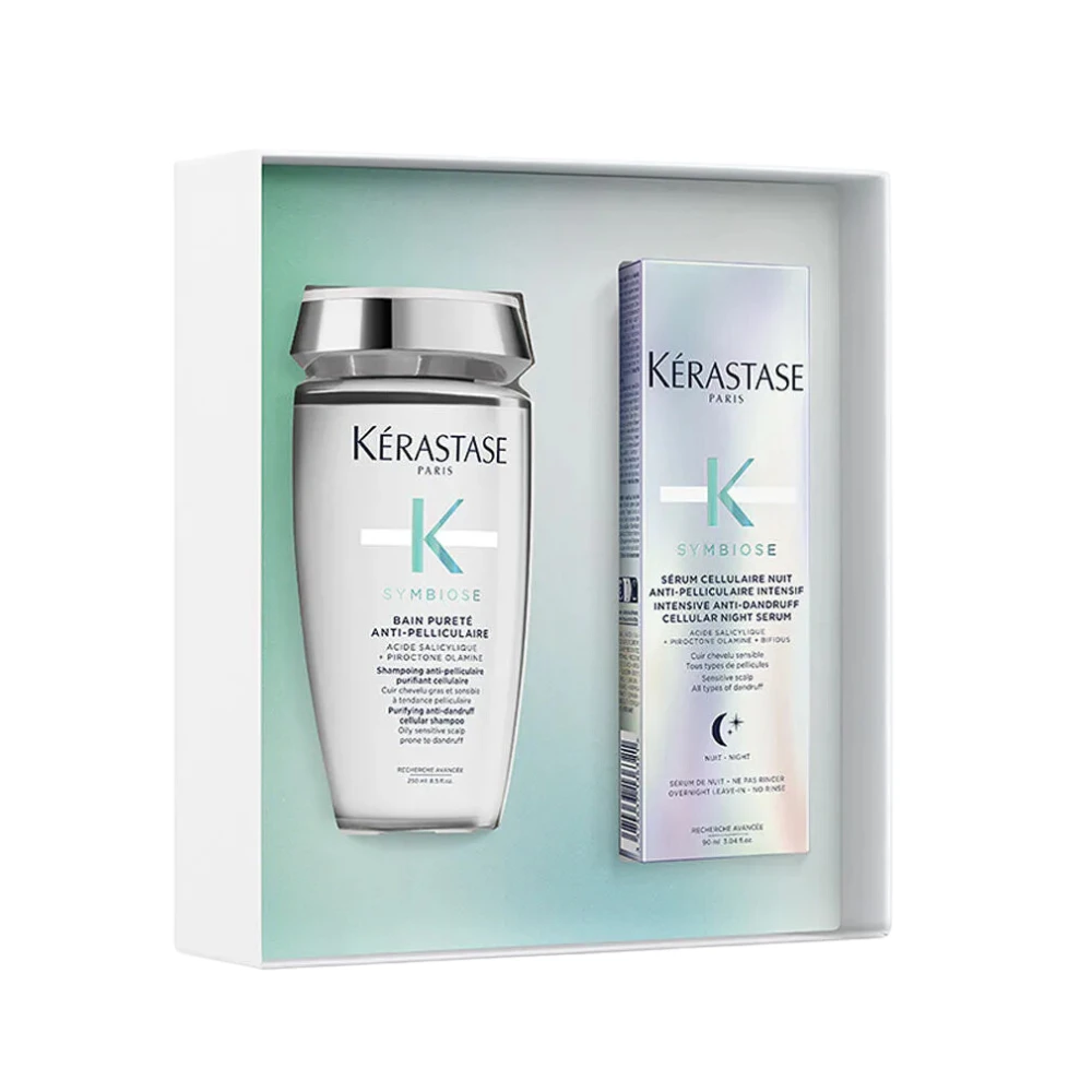 Revitalize your sensitive, dandruff-prone scalp with this glorious scalp care set, featuring an anti-dandruff shampoo and night serum. Created with a lightweight formula, it soothes, strengthens, and hydrates hair without weighing it down. Formulated with salicylic acid and plant-based beads, this duo purifies the scalp, removing dead skin cells and eliminating dandruff symptoms, leaving your hair revitalized. Elevate your scalp care routine with this exclusive set, designed to nourish and refresh sensitive scalps, leaving them flake-free.