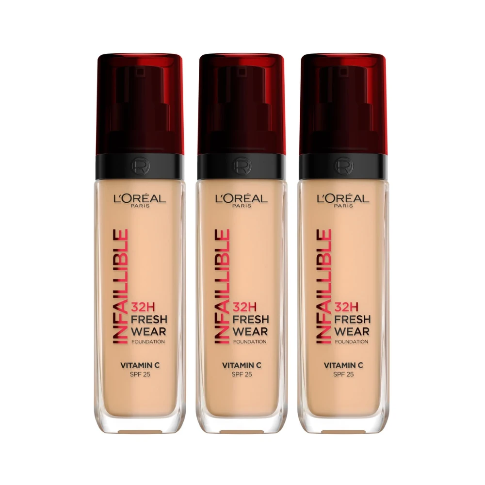 Achieve a flawless, radiant complexion that lasts as long as you do with the L’Oréal Paris Infallible 32H Fresh Wear liquid foundation bundle. This triple-pack ensures you never run out of your favorite lightweight, breathable formula. Engineered with advanced oxygen technology, this foundation provides full coverage without the heavy, cakey feel, allowing your skin to breathe while maintaining a fresh, satin finish for up to 32 hours.