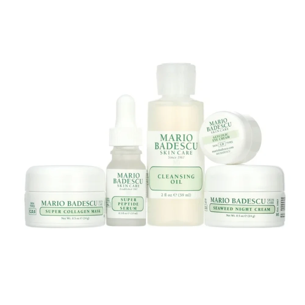 The Mario Badescu Good Skin Is Forever & Ageless Kit is a five-step skincare regimen designed to combat signs of aging. This curated collection utilises potent ingredients to address wrinkles, fine lines, uneven tone, and texture, aiming to reveal a more supple, toned, and youthful complexion.