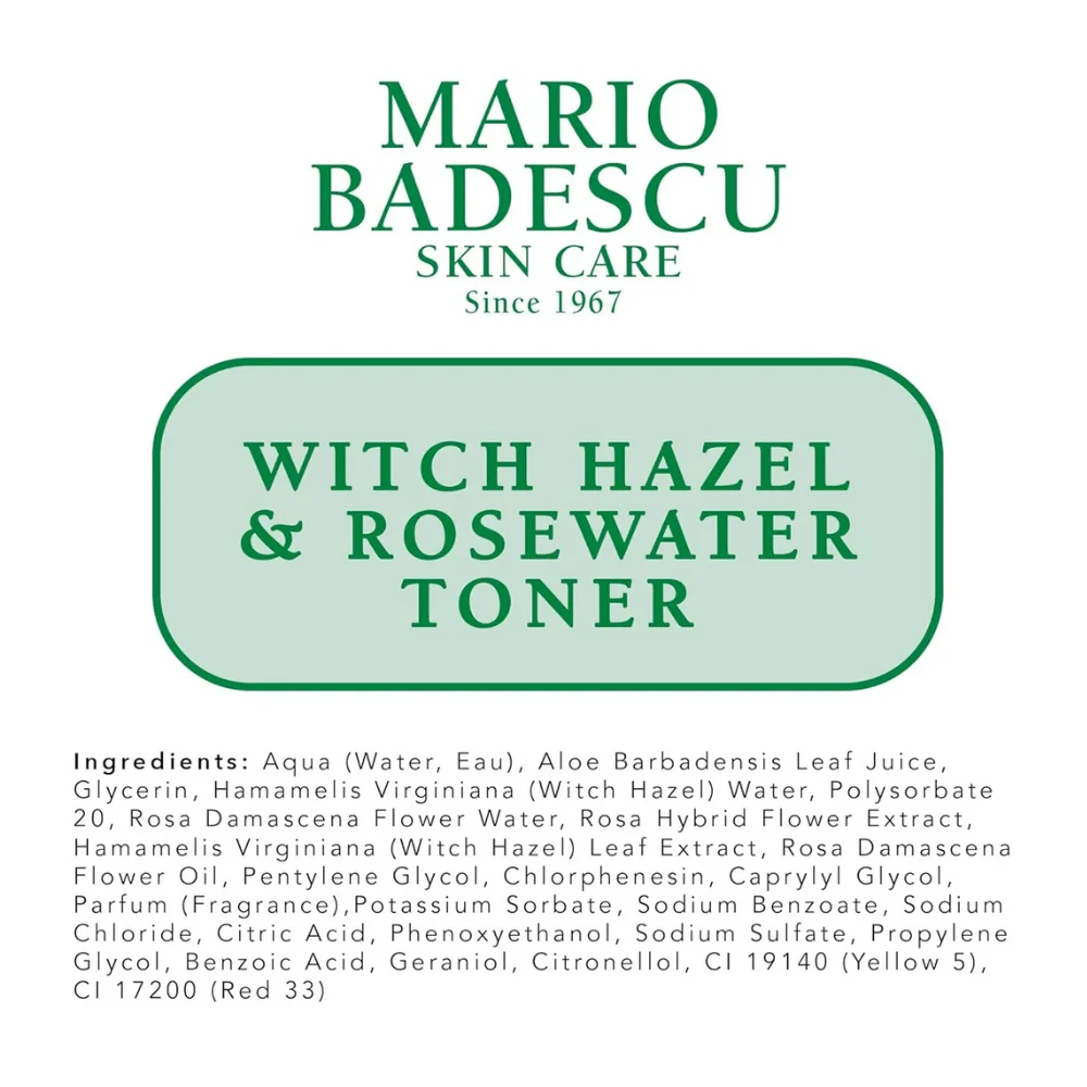 The Mario Badescu Witch Hazel & Rosewater Toner is a gentle yet effective toner to cleanse and purify skin. Formulated with Witch Hazel – a natural astringent, hydrating Aloe Vera, and antioxidant-rich Black Rose, this toner will give you a radiant glow to go with your purified skin!