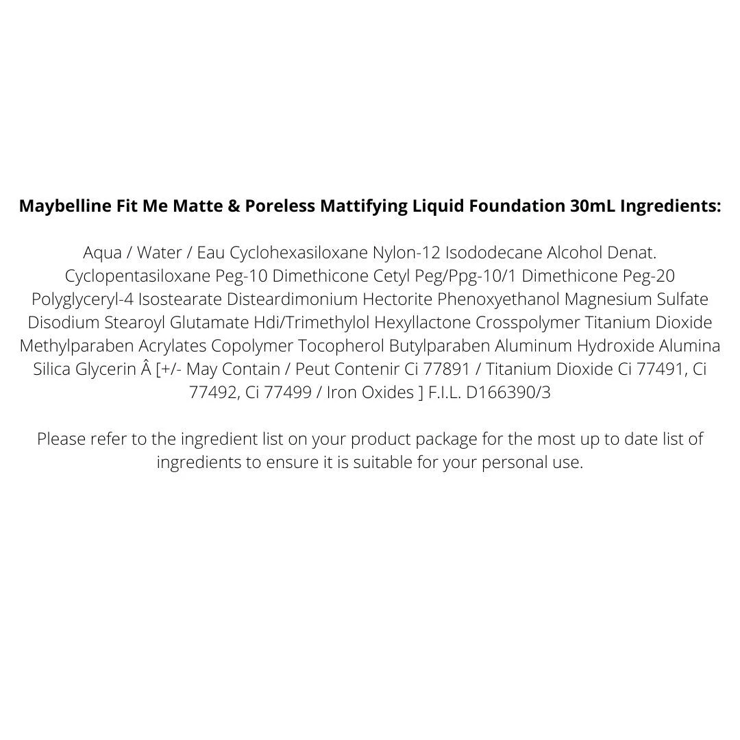 Looking for the perfect foundation fit? Maybelline’s Fit Me Matte & Poreless Liquid Foundation is all about your individual skin tone and texture. Ideal for normal to oily skin types, this ultra-lightweight formula features flexible micro-powders to control shine and blur pores throughout the day. With its medium coverage, the liquid foundation leaves a natural finish on the skin that’s never flat or cakey. This oil-free mattifying foundation is dermatologist and allergy tested.