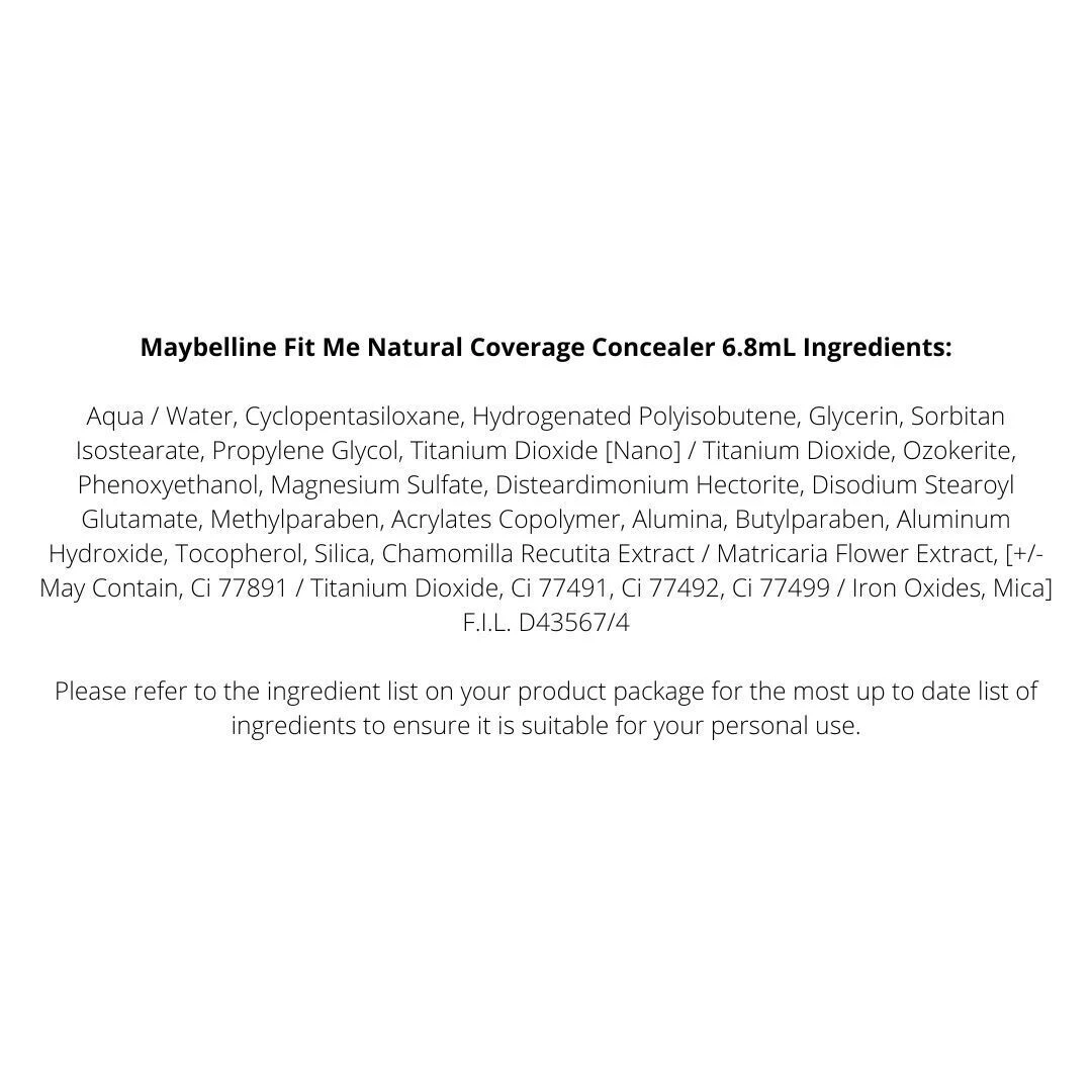 Maybelline Fit Me Concealer features an oil-free formula that conceals redness, flaws, and blemishes to deliver a more even complexion.