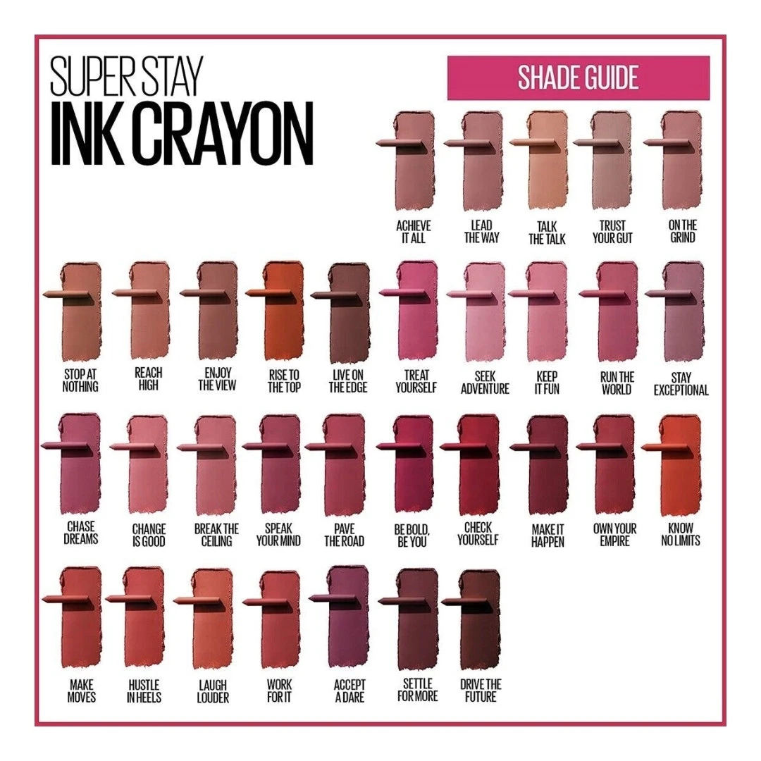 Maybelline’s SuperStay Ink Crayon Lipstick goes on crayon-easy and lasts up to 8 hours! Draw it on and bring it on, all day. Their 1st lip crayon with Elastic Ink technology glides a rich layer of matte colour across the lips with mistake proof control that lasts up to eight hours of wear. Keep the tip ultra-precise with the built-in sharpener, so you can easily apply your lip colour no matter where your day takes you.