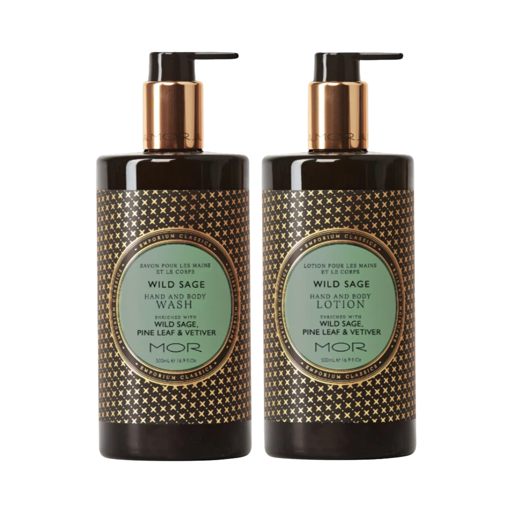 Elevate your daily self-care ritual with the MOR Emporium Classics Wild Sage collection, a sophisticated duo designed to cleanse, hydrate, and perfume the skin. This luxurious set features an earthy, fresh aroma where herbal sage meets the depth of ambergris, musk, and vetiver, creating a grounding sensory experience that lingers long after use.