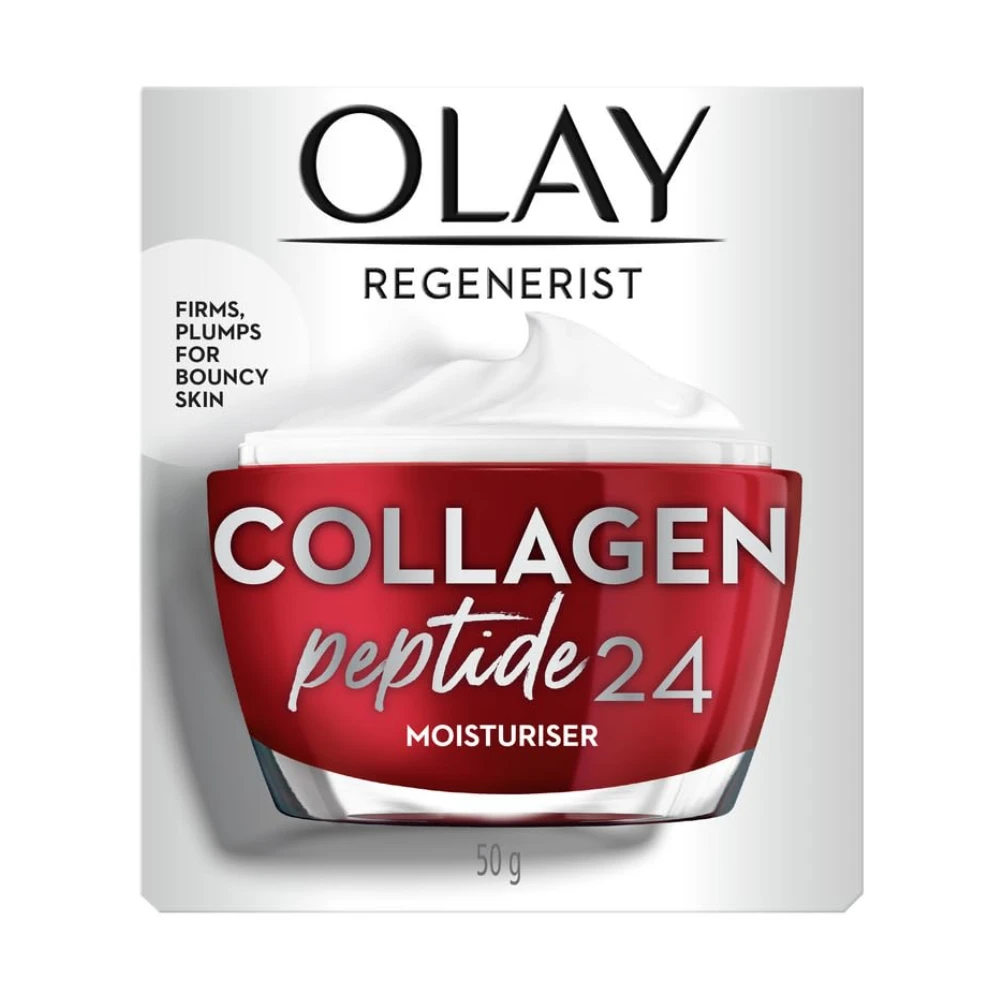 Experience visibly firmer, smoother skin with the Olay Regenerist Collagen Peptide 24 Moisturiser. Formulated with Collagen Peptides and 99% Pure Niacinamide, this rich, fragrance-free cream penetrates deep into the skins surface to hydrate for 24 hours, reduce fine lines, and restore skins natural bounce. Free from parabens, phthalates, mineral oils, and synthetic dyes, it delivers powerful anti-aging results without compromise.