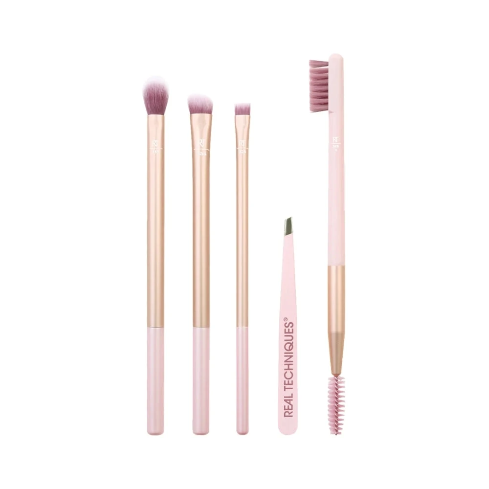Effortlessly sweep and blend for a soft, natural eye and brow look with the Real Techniques Naturally Beautiful Eye Makeup Brush Set. This set includes five new eye brushes and tools designed to help create the no-makeup makeup look. Brushes can all be used with cream and powder shadows, liquid or gel eyeliners, brow pomade, and brow makeup.