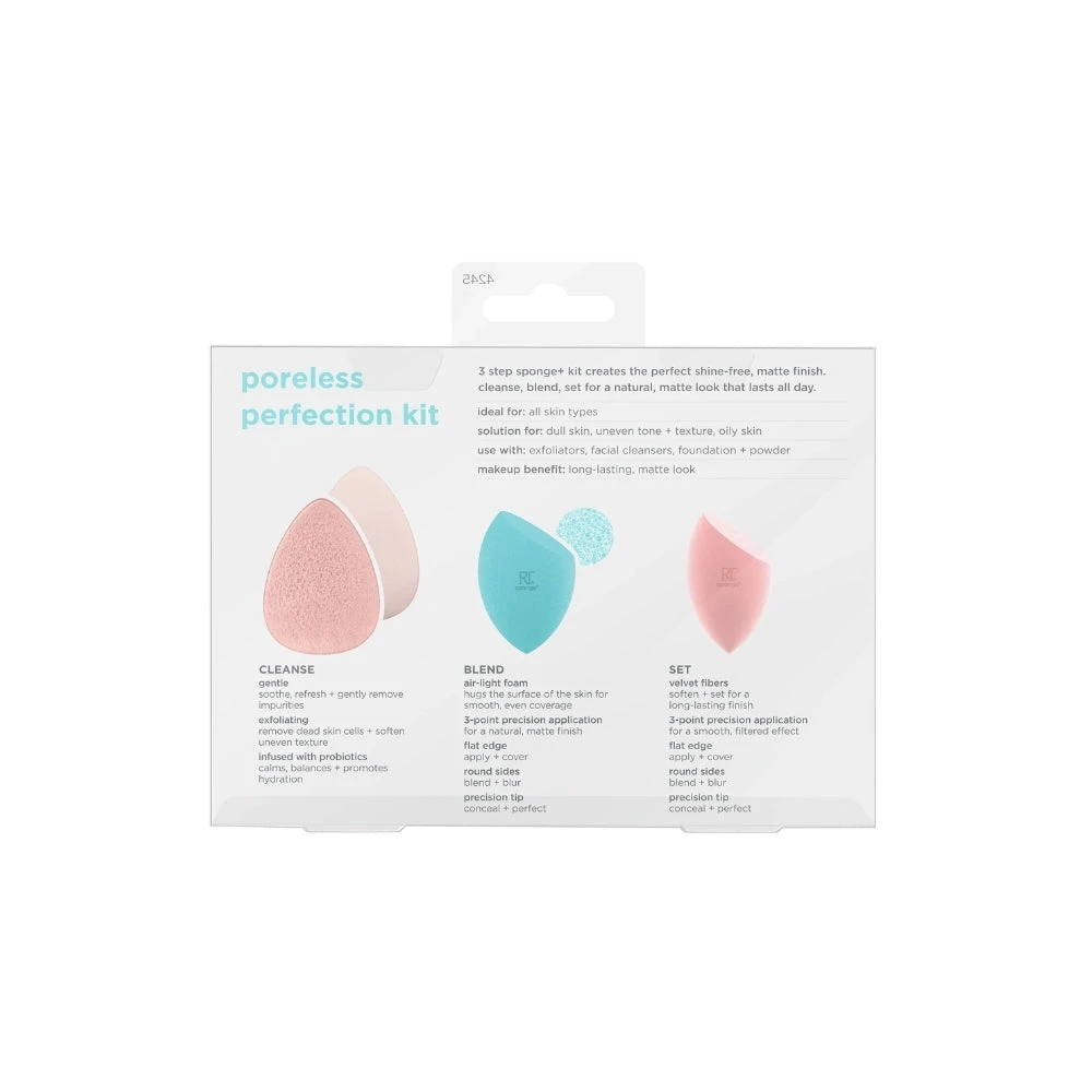 Cleanse. Blend. Filter. The Poreless Perfection Kit helps you create a matte complexion in 3 steps! Cleanse with the Miracle Cleanse Sponge, blend with the Miracle Airblend Sponge, and filter with the Miracle Powder Sponge for a natural, matte finish.