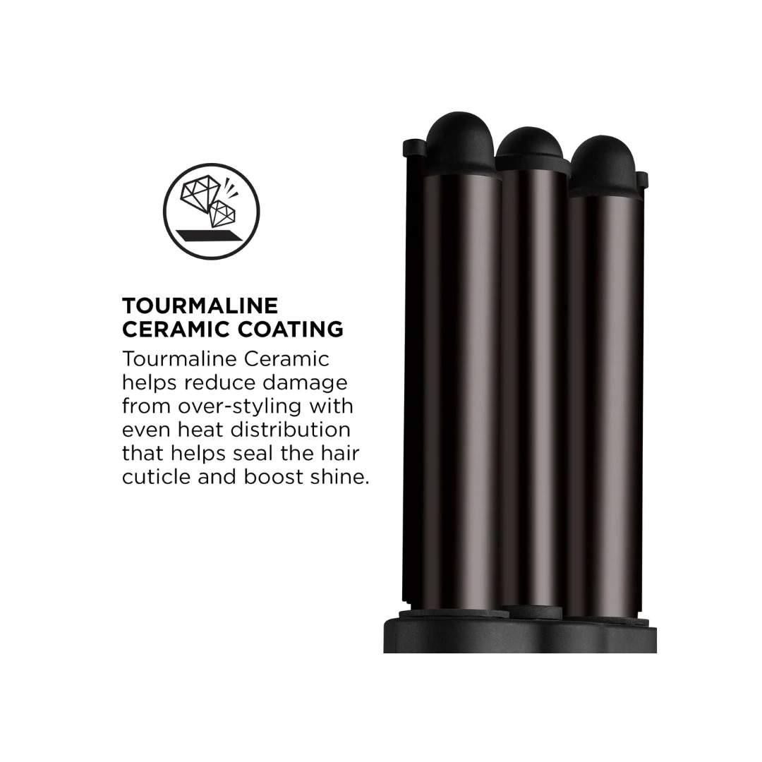 Create deep, luxurious waves that last from early morning until late night with this 3-Barrel Tourmaline Ceramic Jumbo Waver. Barrels with three coats of ceramic heat help reduce heat damage.