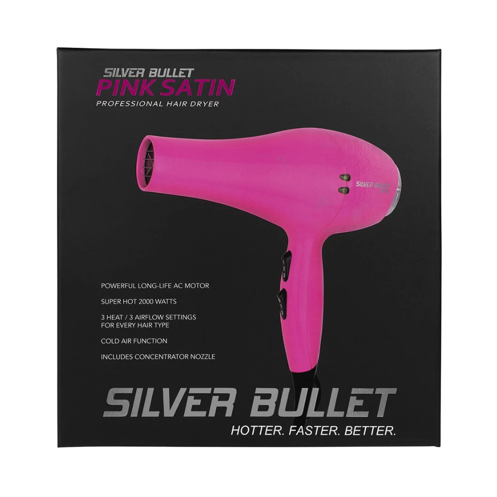 Exceptional power, exceptional value and exceptional good looks! With a super-hot 2000 watts and powerful, long lasting AC motor, satiny smooth results are instant. The Silver Bullet Satin Hair Dryer is Silver Bullets first foray into the world of vibrant, on trend colour.