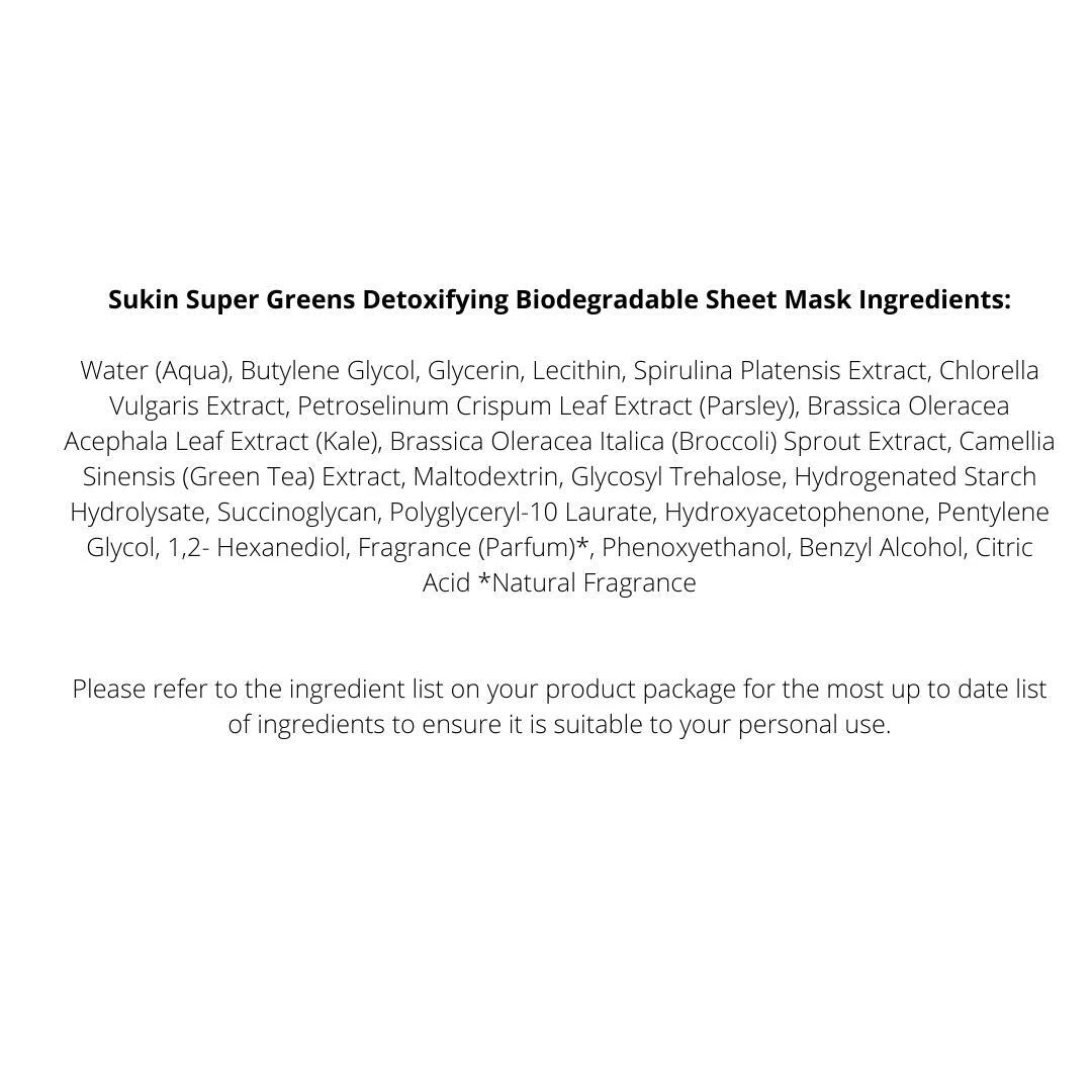 Infuse your skin with the ultimate green boost. This Sukin Super Greens bundle features eight detoxifying sheet masks enriched with a potent serum of Kale, Spirulina, Parsley, and Chlorella. Designed to target dullness and environmental stress, these masks provide a concentrated dose of antioxidants to leave your skin feeling hydrated, revitalized, and naturally radiant.
