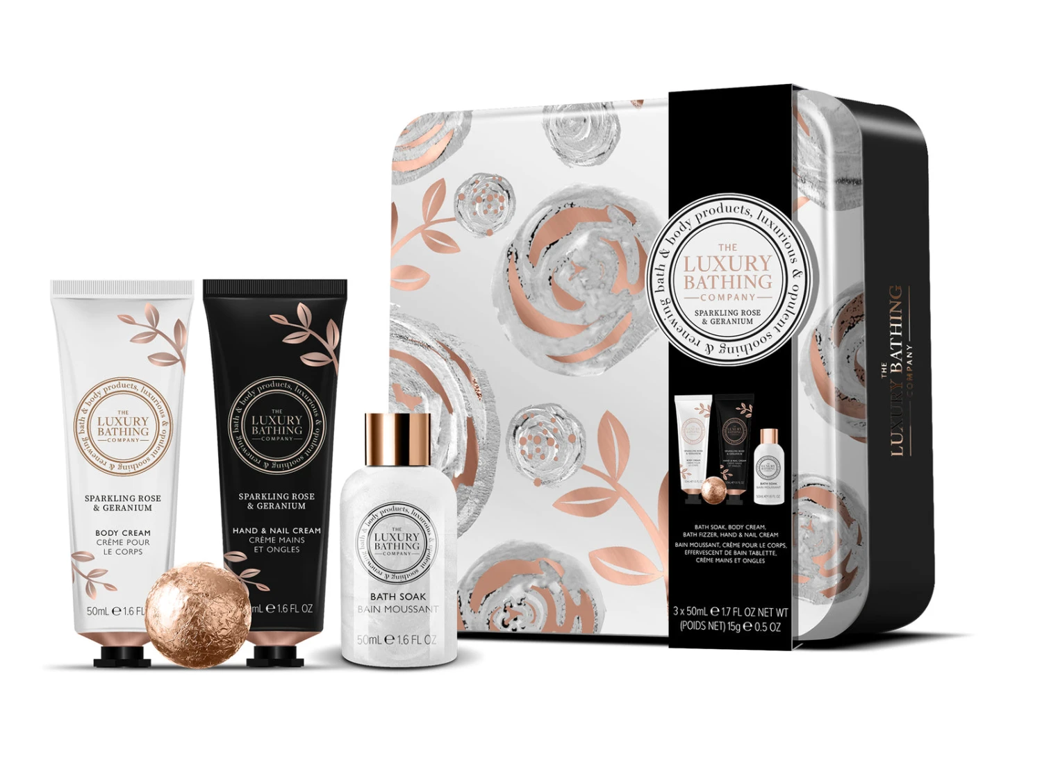 - Collection: The Luxury Bathing Company Sparkling Rose & Geranium.